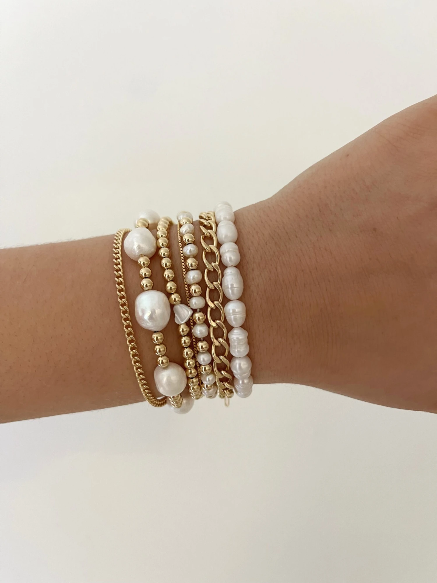 Freshwater pearls mixed with 14k gold filled beads to add a statement to your stack this season
