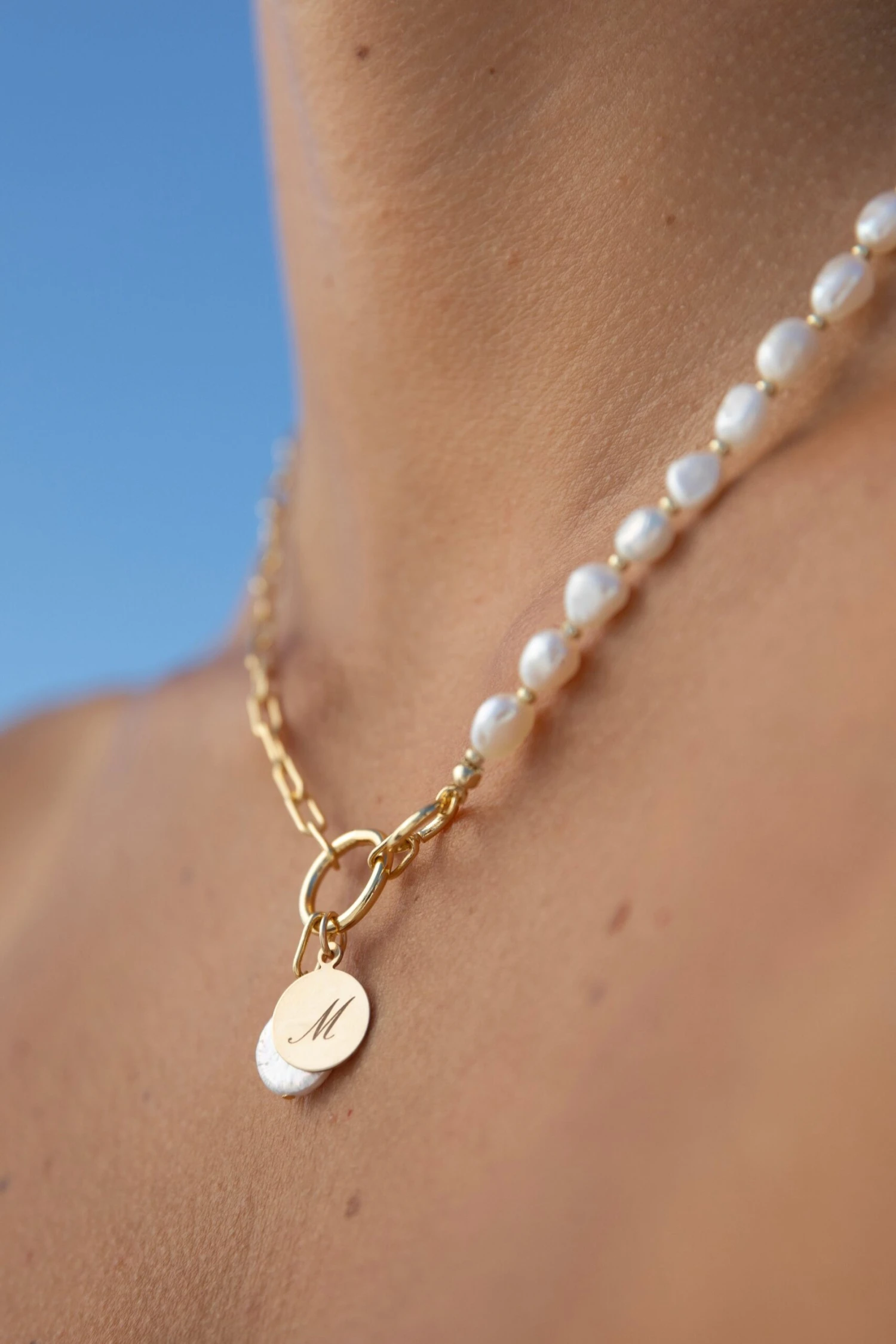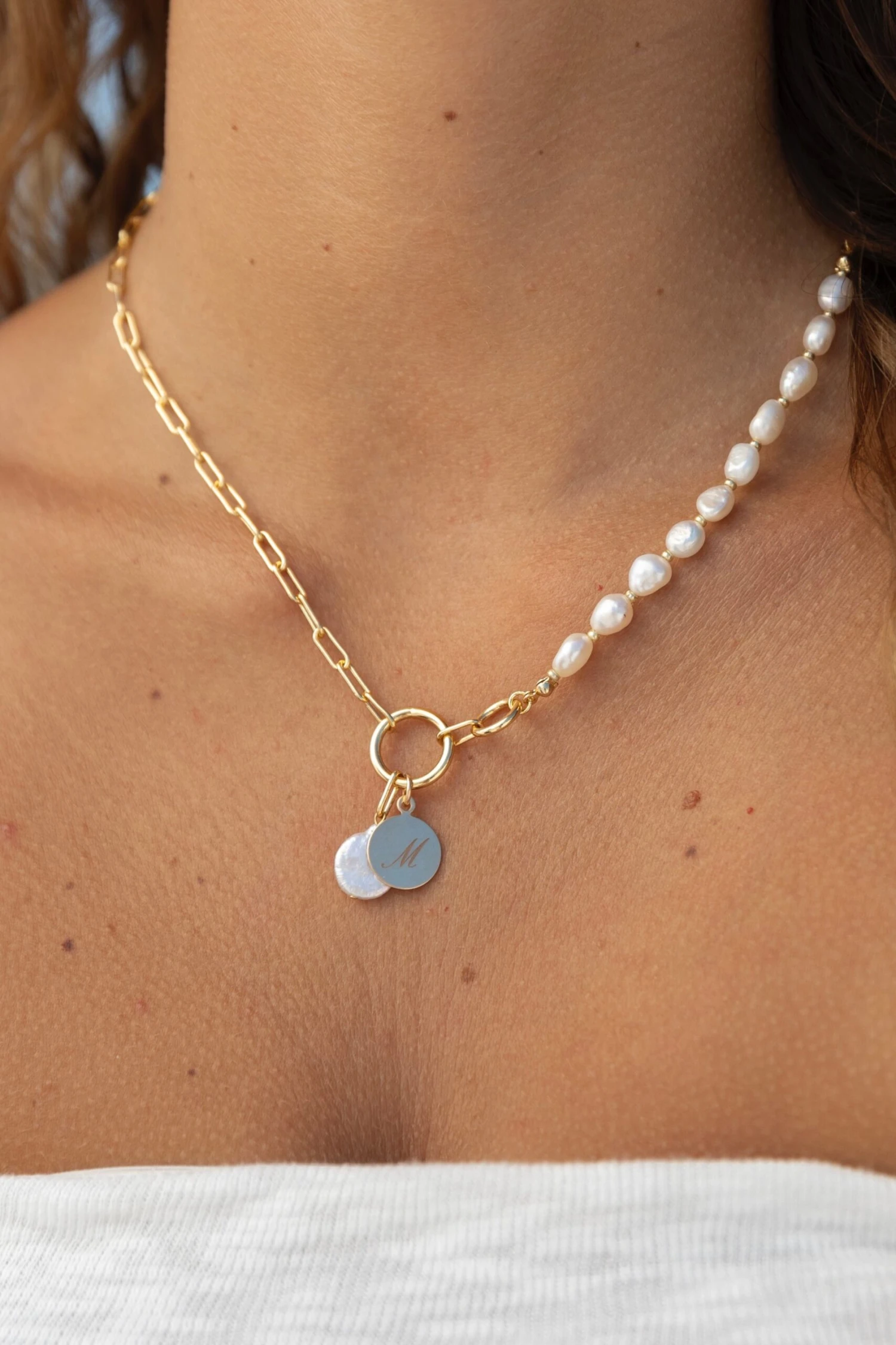 Gold-filled and freshwater pearl necklace, 17inΒ