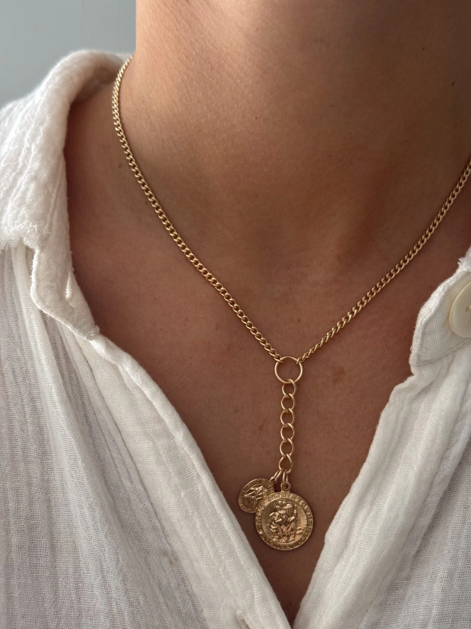 SKU: YWX2A 7865460326453 Category: Necklaces Tags: 14k filled, 14k gold filled, Charm, Charm necklace, Coin, Curb chain, Gold filled, Lariat, Necklace, Necklaces, Spring, Summer, Y necklace