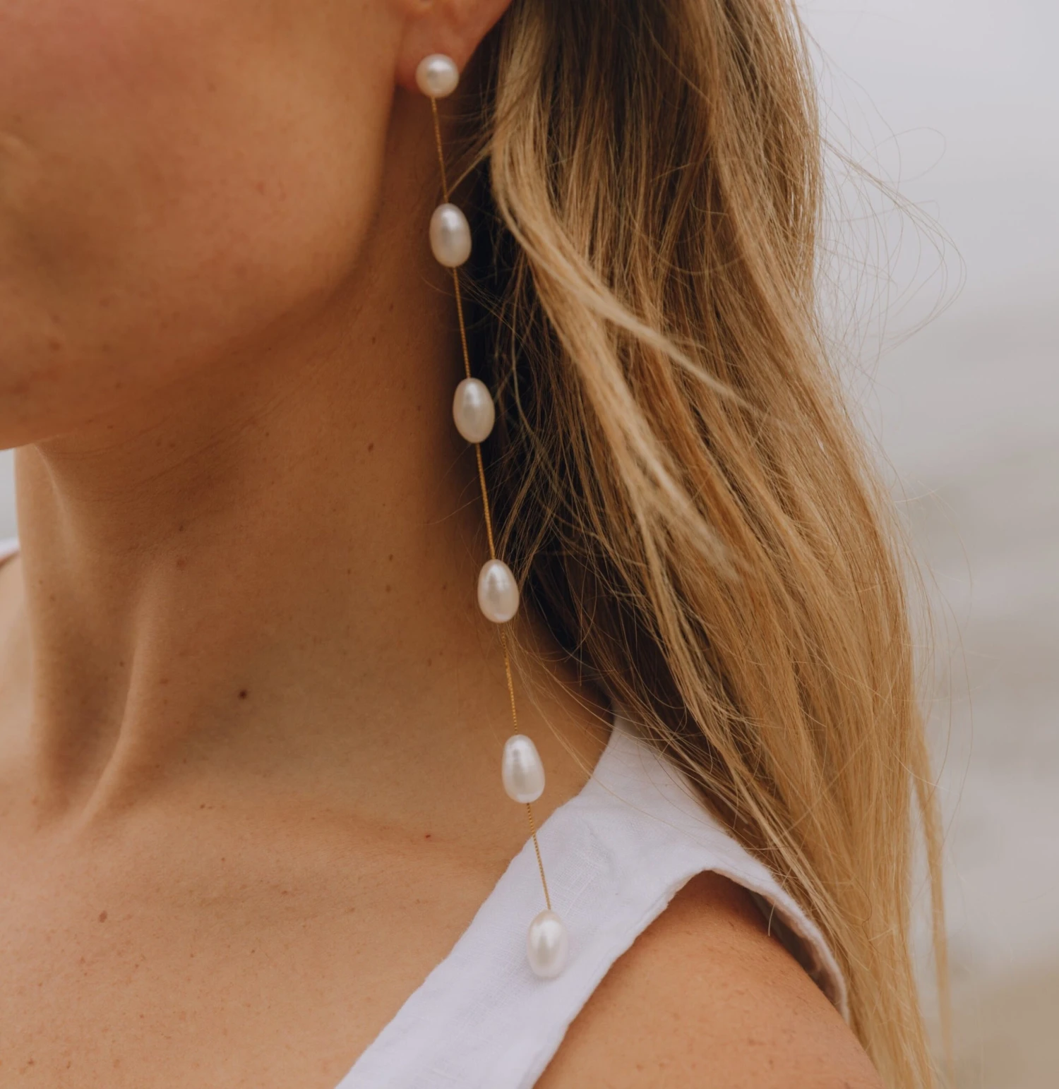 Go big in these extra-long pearl studs that are sure to make a statementÂ