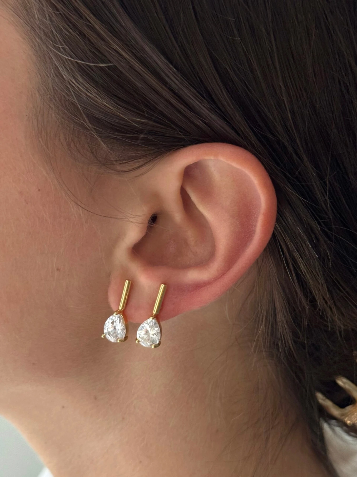 Teardrop cz bar studs, Gold over stainless steel, 17mm