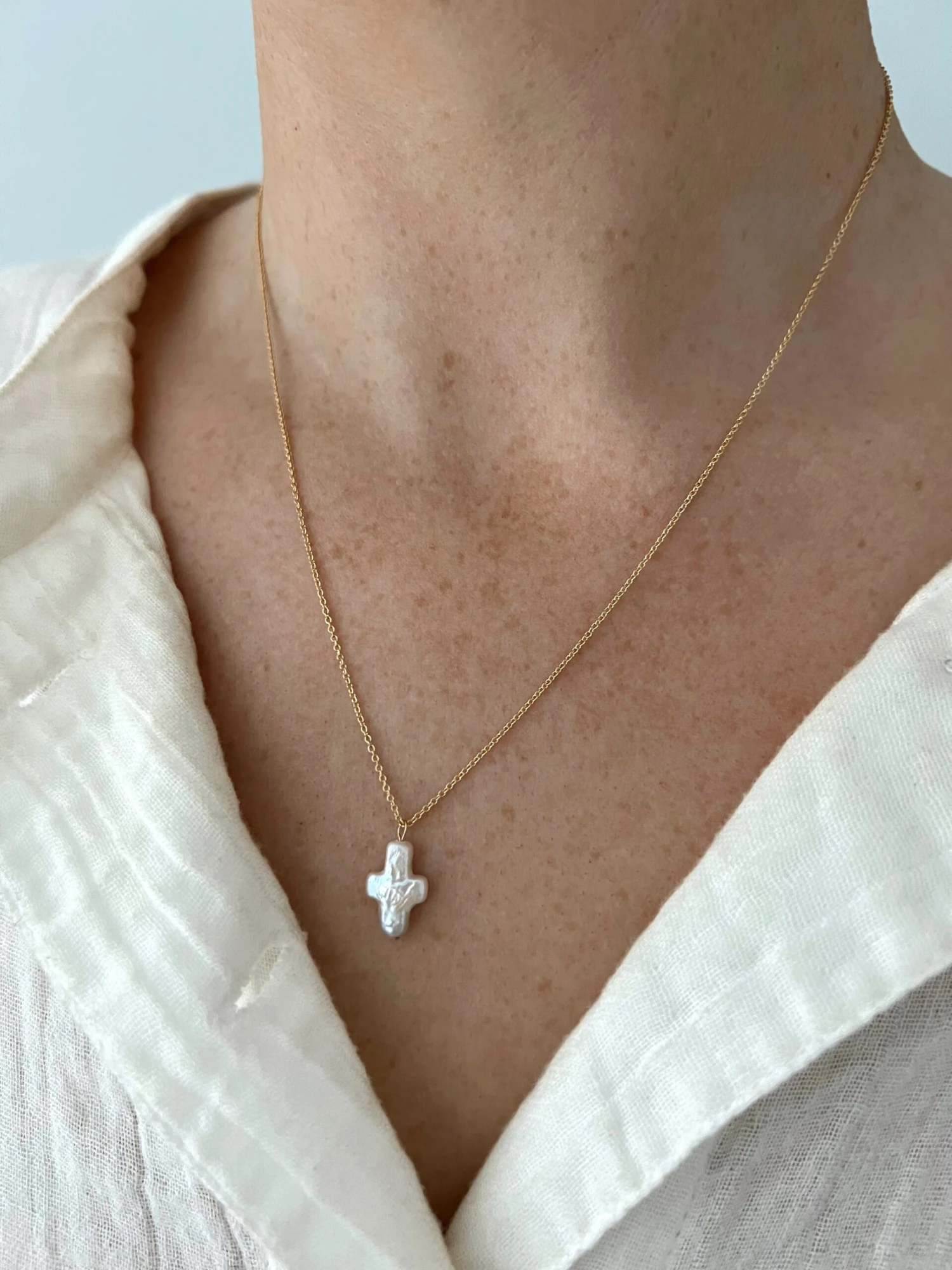 SINGLE PEARL CROSS CHAIN NECKLACE