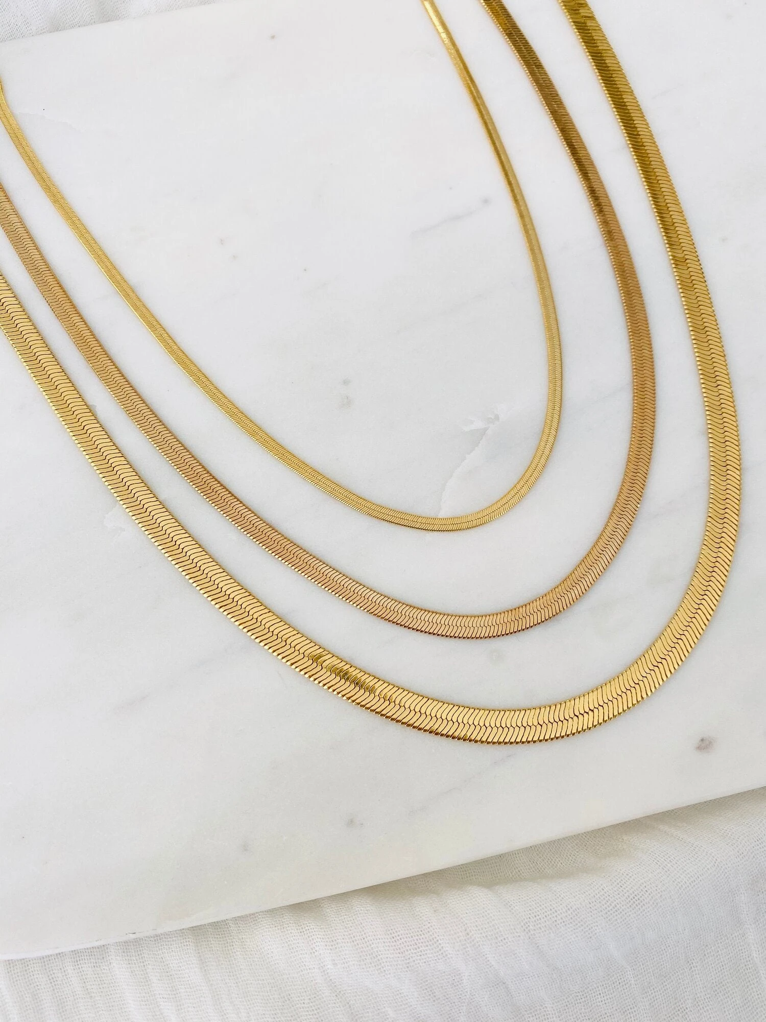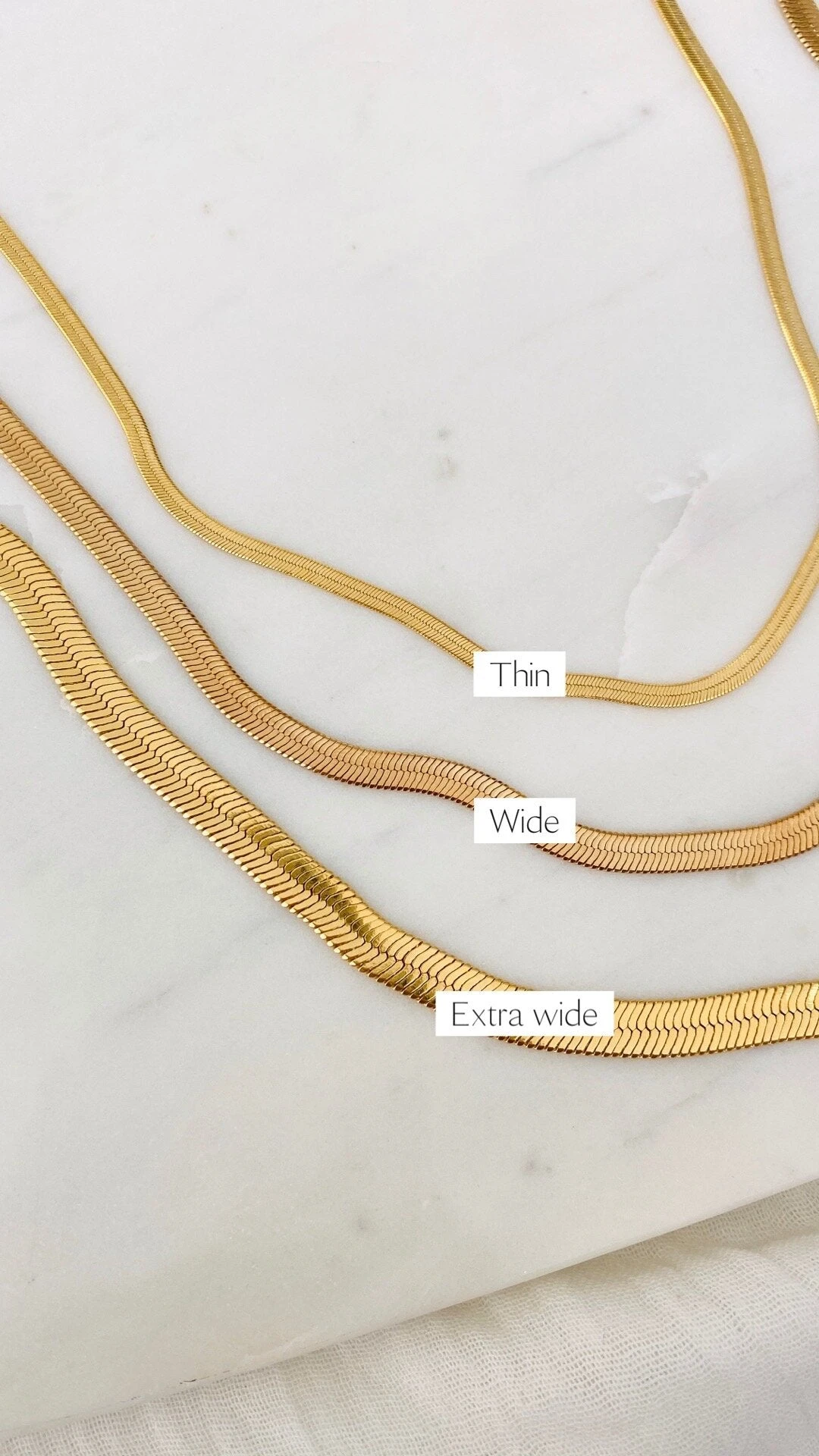 Classic herringbone chain, available in three different sizes. A staple for every stack!