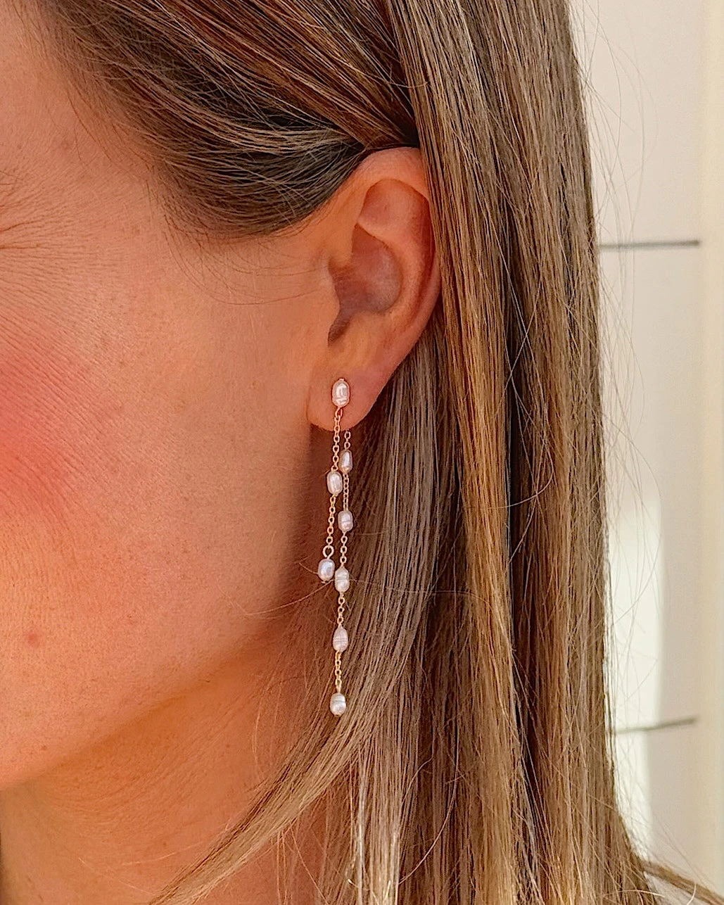 Freshwater pearl and gold drop earrings, wear with the pearl drop earring backs or add a plain earring back to switch up the earring for a shorter look!Â